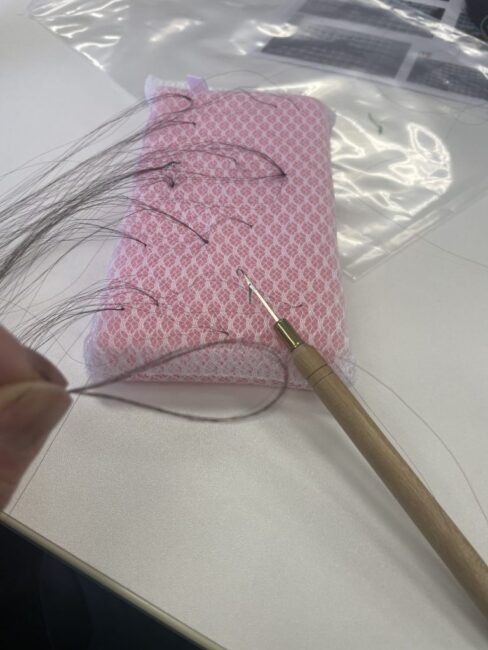 再現美容師。 専用の医療用ウィッグ(ヘアエピテーゼ) にカットなどを施します。 髪の毛が抜けた 脱毛症、がん患者さんが、 希望するヘアスタイルに近づける、 まさに「再現」する美容師です。 植毛やアンチエイジングスタイル、 色々な要素を勉強しました。