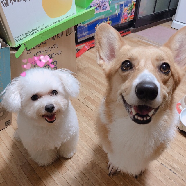 ボロネーゼという犬種の、スフレのスーちゃんとゆずです。