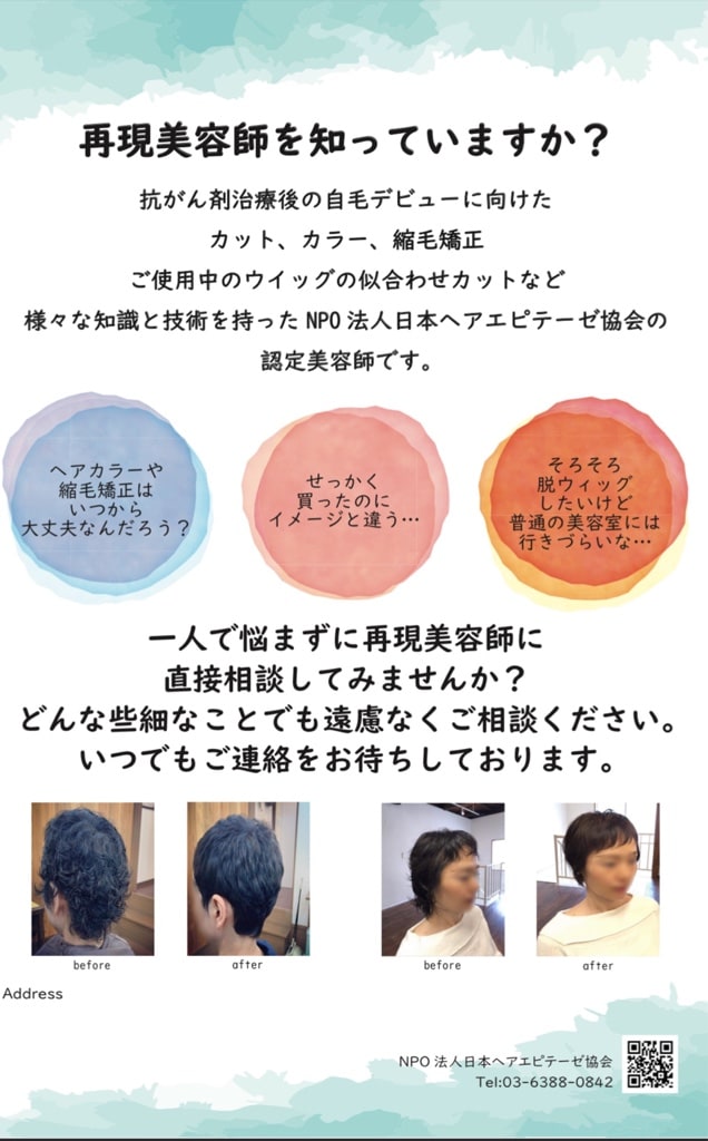 お近くの再現美容師が外見ケア(アピアランスサポート)を通して