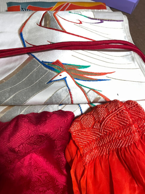 同じ鶴に金糸銀糸の入った見た目より豪華な帯