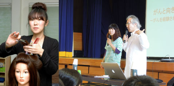 乳がんを患った美容師は、どんな仕事をしているのか。インターネットで調べ、脱毛前の髪形をかつらで作る「再現美容」に取り組むNPO法人「日本ヘアエピテーゼ協会」を知った。かつらや下着など、治療の影響で必要になる「補正具」への費用補助を求める署名活動もしていた。