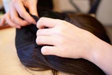 なによりも自然さにこだわりました。とくに人工毛は髪の毛の特性を徹底的に研究し、世界ではじめて人工的にキューティクルをつくることに成功。しかも他では真似のできない太陽光の反射率(ヘアエピテーゼ以外の人工毛は太陽光で光ります)まで可能にしています。